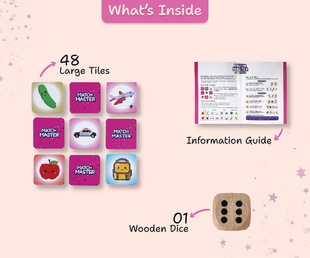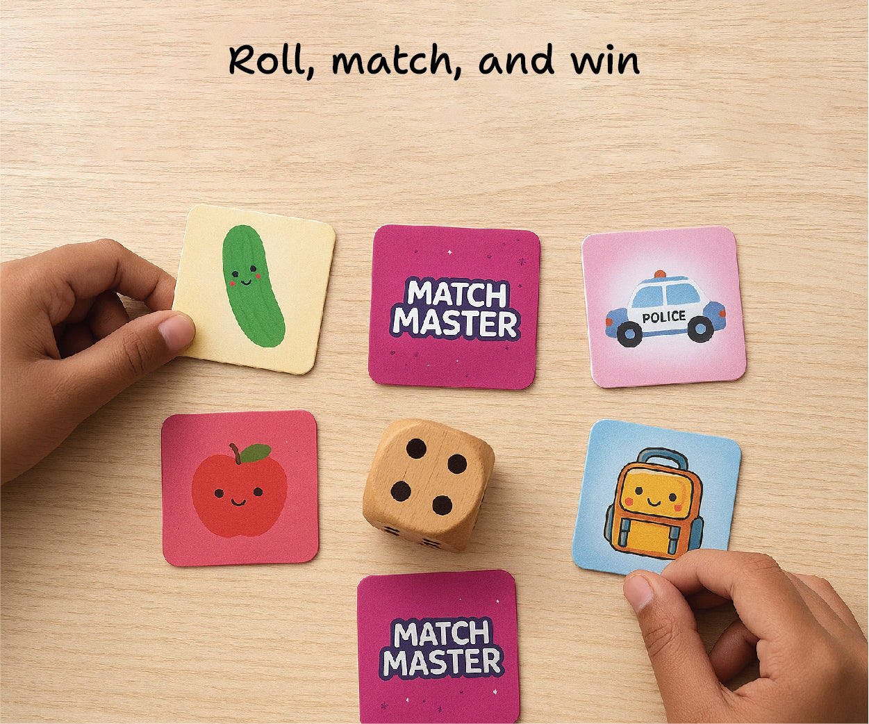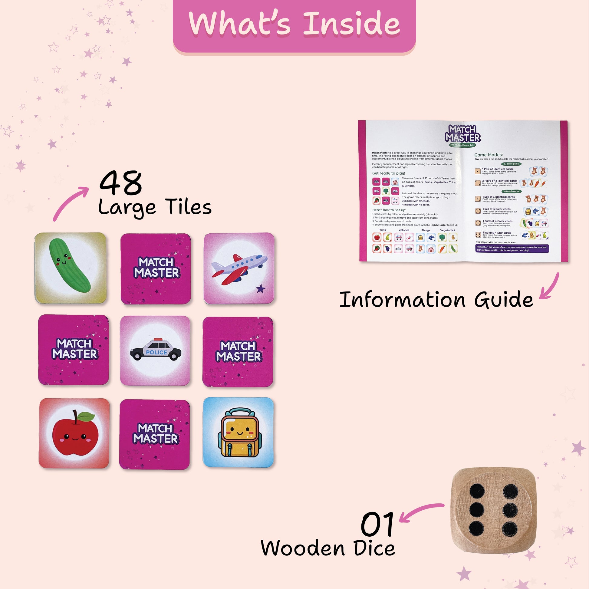 Match Master is an exciting and interactive memory game perfect for children aged 2 years and above. The game teaches kids to explore different elements, match them in different ways to understand different possibilities.What's Inside? 48 Tile Cards1 DiceInformation guideKids roll the wooden dice to pick a game mode, turning every round into a new challenge. The gameplay is simple yet st. . .